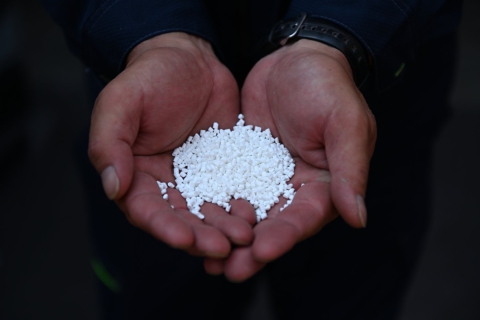 プラスチック製造 大洋舗装のプラスチック製造の特徴 古いプラスチックをリサイクルしています ゴミと思われるようなプラスチックであっても、私たちのリサイクル技術で有効な資源として生まれ変わらせることができます。 プラスチックリサイクルの流れ 搬入 パレット・バンパー・ミカン箱などの古くなったプラスチック製品を受け入れます。 粉砕 加工しやすくするために、元の製品を小さく砕きます。 洗浄 プラスチックに付着した汚れを取り除きます。 洗浄水も再利用して、環境保護に務めています。 溶融・成形 材料に熱を加えて溶かし、お客さんの希望に合わせた大きさ・色・硬さに加工します。 梱包・出荷 出来上がったペレットを袋詰め(フレコンパック)して出荷します。